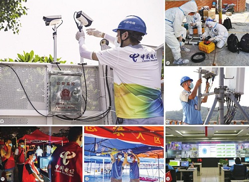 圖①-⑥分別為中國(guó)電信廈門分公司工作人員在調(diào)測(cè)防疫監(jiān)控設(shè)備,接續(xù)網(wǎng)絡(luò)線路,優(yōu)化重點(diǎn)區(qū)域無線網(wǎng)絡(luò),為臨時(shí)核酸檢測(cè)點(diǎn)開通云桌面,為核酸檢測(cè)點(diǎn)布設(shè)WiFi設(shè)備,監(jiān)測(cè)網(wǎng)絡(luò)運(yùn)行狀況。