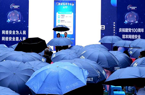 南寧市民冒雨參加廣西2021年國家網(wǎng)絡(luò)安全活動(dòng)周現(xiàn)場活動(dòng)。