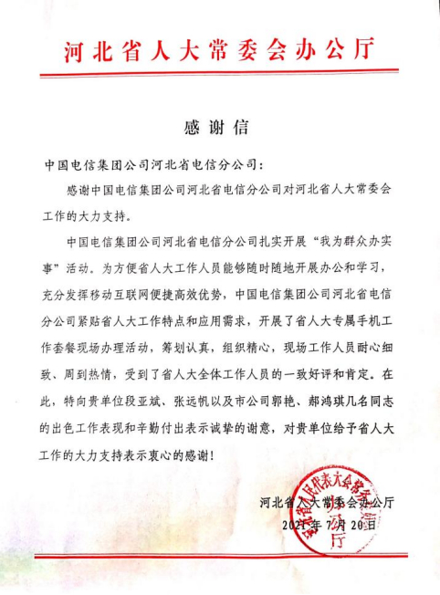 正是將誠實守信、依法經(jīng)營作為各項工作的基本行為準則,秉著這樣的理念,多次獲得河北省人大常委會辦公廳、省人民政府參事室等政府部門感謝信。我們將一直致力于誠信工作,以實際行動為公司發(fā)展注入更多正能量。