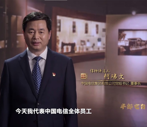 2021年5月17日,中國(guó)電信董事長(zhǎng)、黨組書(shū)記柯瑞文在《信物百年》節(jié)目中作為信物講述人講述“半部電臺(tái)”背后的故事。