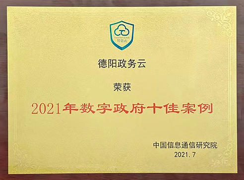 2021年7月28日,德陽政務(wù)云在中國信息通信研究院主辦的2021可信云大會上榮獲“2021年數(shù)字政府十佳案例”。