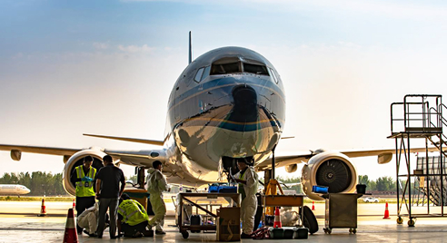 ▲南航機(jī)務(wù)工作者使用AR智能眼鏡進(jìn)行飛機(jī)安全檢查