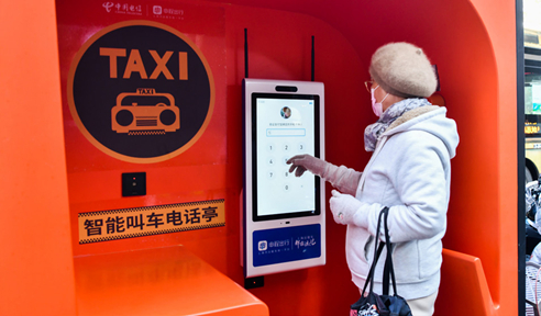 ▲上海公司與上海市出租車統(tǒng)一平臺申程出行通過為公用電話亭配備一鍵叫車智慧屏,打造了“智能叫車電話亭”。智能叫車電話亭解決了更多人群的日常出行需求,讓每個人都能夠充分體驗(yàn)數(shù)字化城市的高效便捷。圖為2021年12月,在上海愚園路街頭的智能叫車電話亭