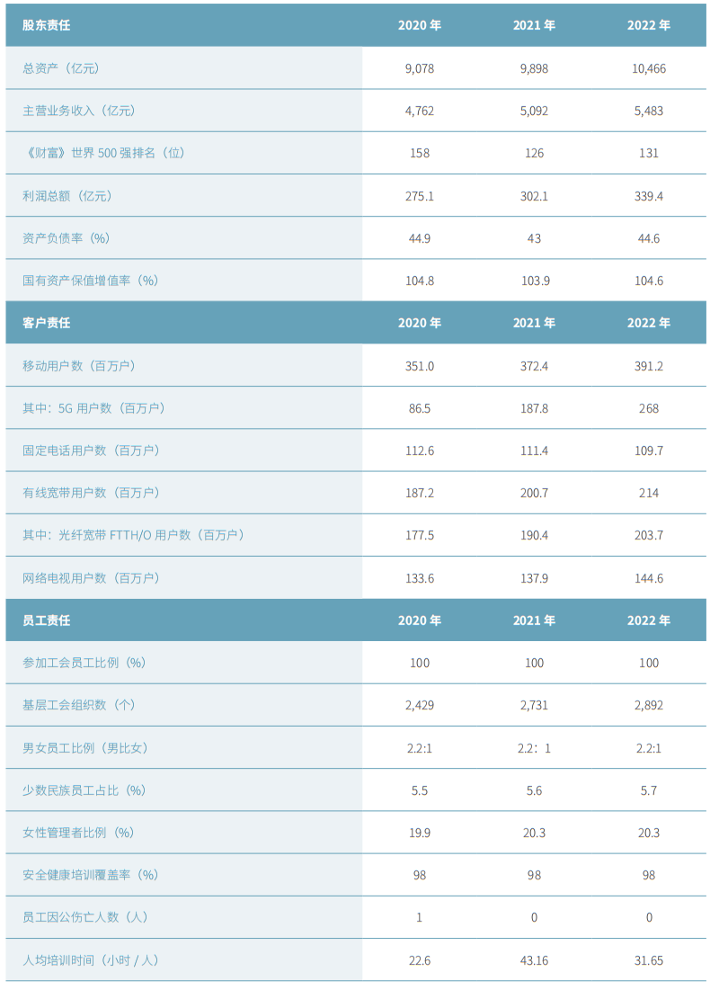 推進(jìn)責(zé)任管理:以習(xí)近平新時(shí)代中國(guó)特色社會(huì)主義思想為指導(dǎo),牢記國(guó)之大者”,堅(jiān)決服務(wù)黨和國(guó)家事業(yè)發(fā)展大局,認(rèn)真履行央企責(zé)任,積極推動(dòng)高質(zhì)量發(fā)展。堅(jiān)持以客戶(hù)為中心,全面深入實(shí)施云改數(shù)轉(zhuǎn)戰(zhàn)略,聚焦數(shù)字信息基礎(chǔ)設(shè)施建設(shè)、賦能數(shù)字中國(guó)、跨越數(shù)字鴻溝、踐行綠色發(fā)展等核心議題,實(shí)現(xiàn)經(jīng)濟(jì)、社會(huì)、環(huán)境的可持續(xù)發(fā)展,加快建設(shè)世界一流企業(yè)。
