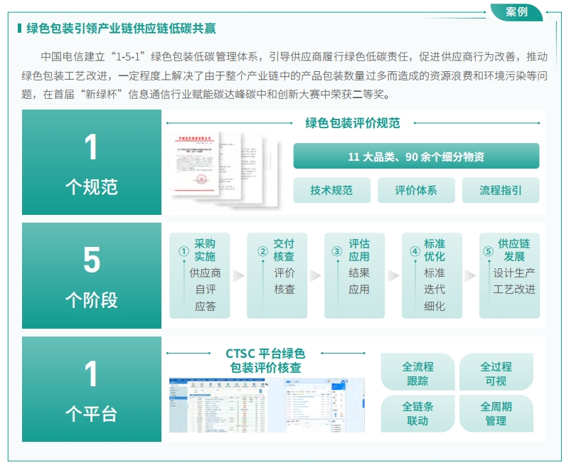 中國電信加快完善綠色產品與服務體系,通過云網基礎設施的綠色轉型為產品與服務注入綠色要素,推動形成綠色低碳生活方式,引領綠色消費。