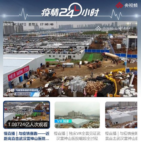 2020 年 1 月 27 日,中國電信與央視頻合作推出“疫情 24 小時”,對火神山、雷神山兩座醫(yī)院的建設(shè)進(jìn)行全程高清直播,并發(fā)訪問峰值超過 2000 萬,累計直播訪問量超過 3 億人次,被網(wǎng)友形象地稱為史上最強“云監(jiān)工”