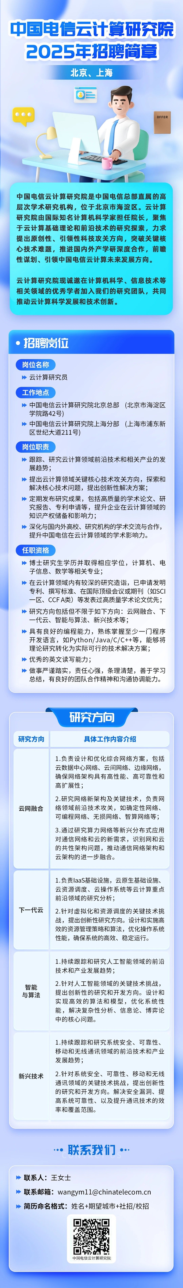 中國電信云計(jì)算研究院2025年招聘簡章(北京、上海)